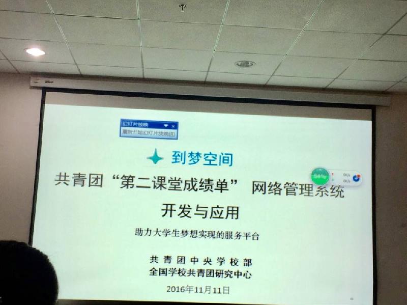 11月11日上午,团中央全国学校共青团研究中心活动部部长马海莅临我校调研指导“第二课堂成绩单”(即“到梦空间”)试点工作。学校党委副书记唐勇出席。党委学生部(处)、教务处、团委相关负责人,航空学院和其他试点学院学生工作负责人、“第二课堂成绩单”具体负责教师及学生代表参加了活动。