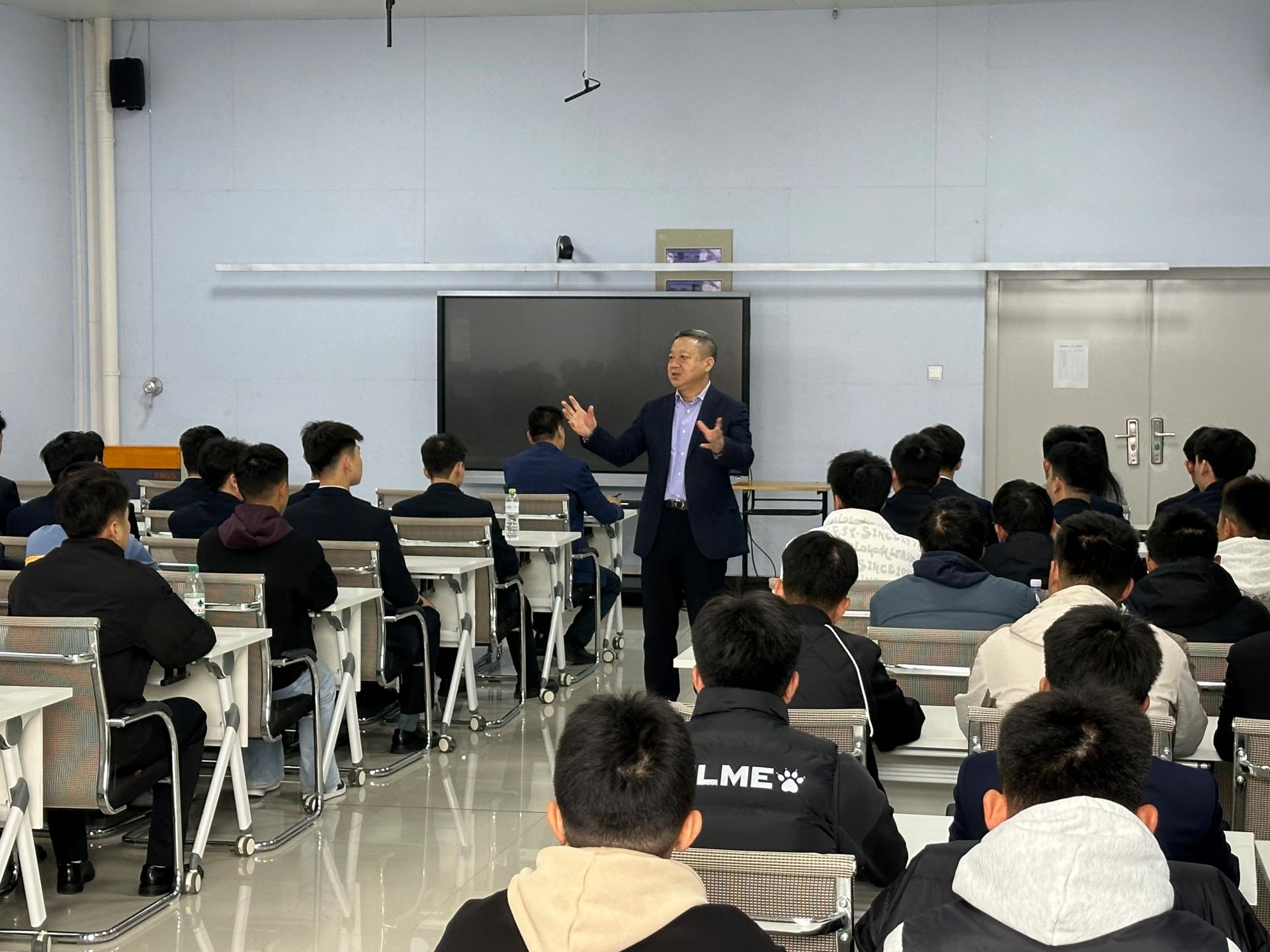 聘任仪式结束后,戴成怀教授为航空学院飞行技术专业在校学生进行面试前动员,并举行了飞行学员作风养成专题讲座。随后,其他随行人员对参会的学生组织了面试,加深了学生对航空公司的了解,同时为学生的未来发展提出建议。