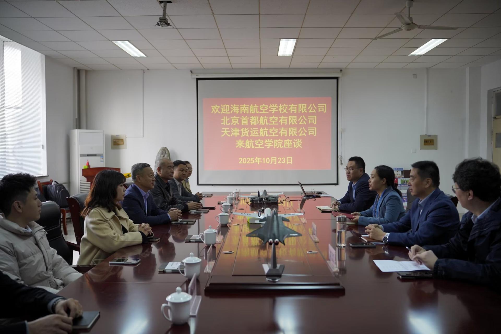 10月23日至25日,海南航空学校有限责任公司董事长戴成怀、首都航空飞训部总经理单德圣、天津货运航空飞行部招飞中心经理曾愉清等一行七人来校开展飞行学员选拔工作。学校党委副书记、院长孔伟金会见来访客人并进行亲切交流。