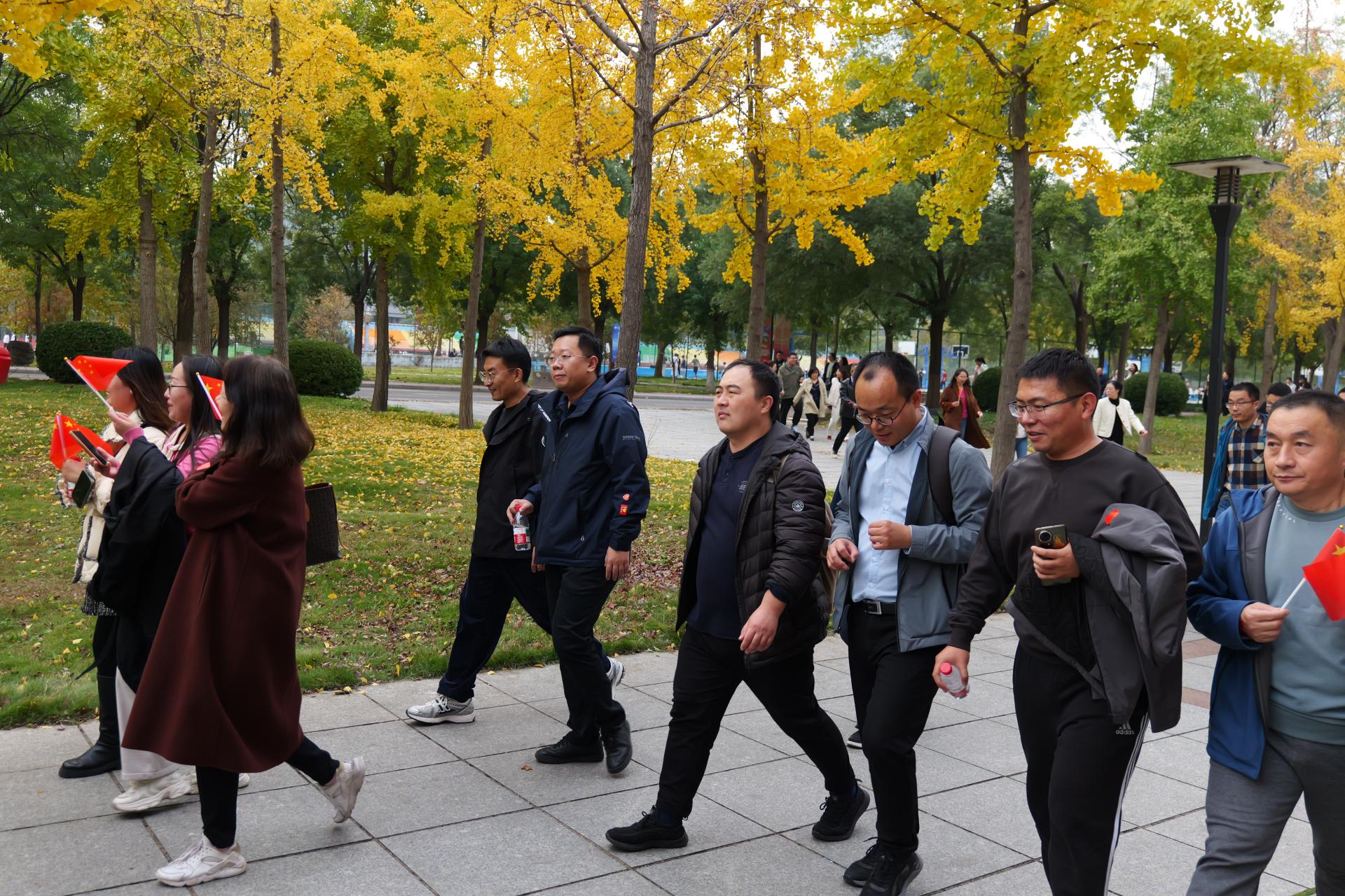 发令枪响,大家迈着矫健的步伐踏上明德大道。绕行途中,大家或畅谈工作生活,或欣赏校园秋景,在东门旗杆、体育馆西门两处打卡点留下了航空人的活力身影。健步走的终点是南门广场,但航空学院的奋进之路永不止步。