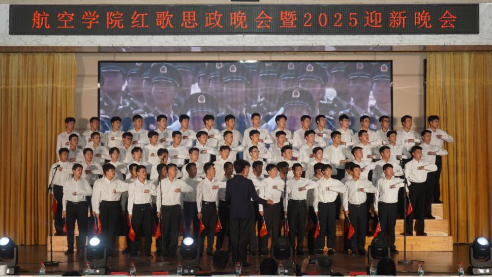 航空学院辅导员、学生党员、入党积极分子、2025级全体新生参加了活动,共同见证了这场融合红色基因与航空特色的视听盛宴,在旋律中回望校史荣光,在歌声中锚定筑梦方向。