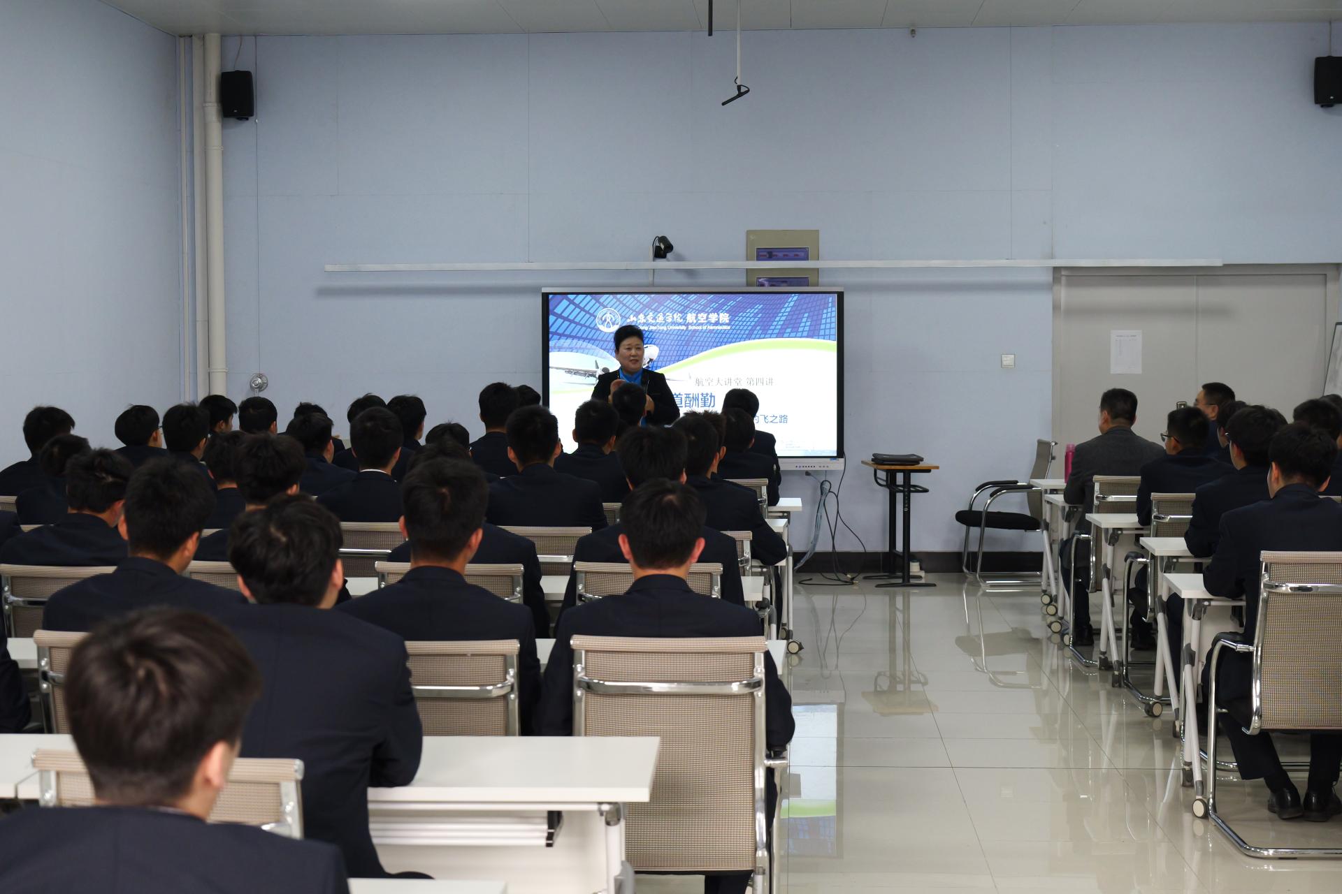 11月12日下午,山东航空首位女机长王惠走进我院“航空大讲堂”,在工程中心C319为我校飞行技术专业的学生带来题为“天道酬勤---我的飞之路”的精彩讲座。