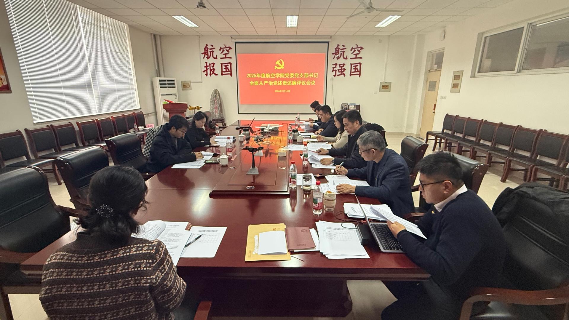 1月14日上午,航空学院党委在综合实验楼303组织召开2025年度党支部书记抓基层党建工作述职和全面从严治党述责述廉评议会议,并组织开展评议考核。科研处副处长张蕾、科研处军工科研管理办公室主任栗波列席旁听,学院党委领导班子成员、各支部书记、办公室主任、组织员参加了会议。