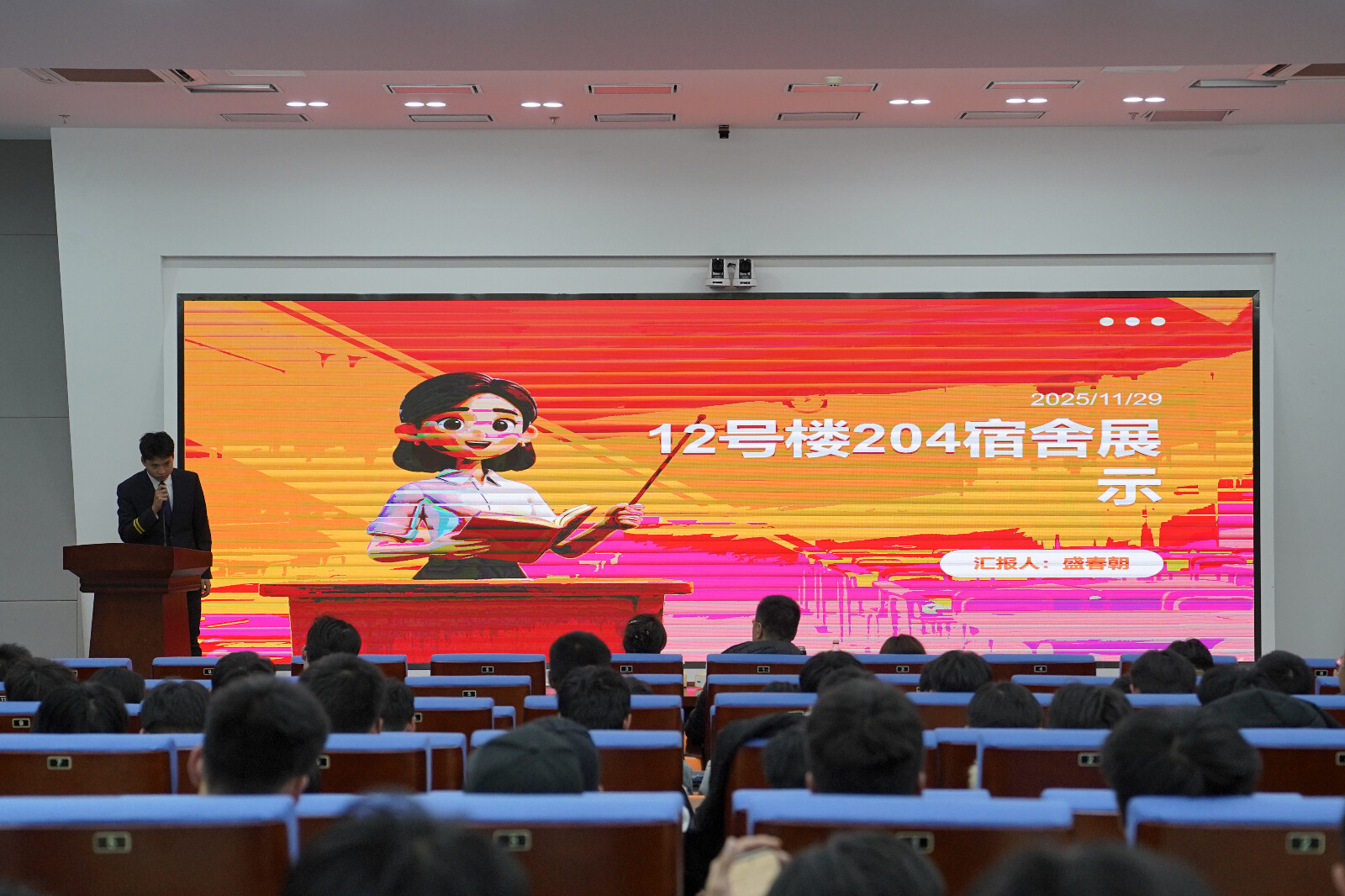 比赛现场,各宿舍代表化身“宿舍故事讲述者”,在3-5分钟的限时展示中,通过精心制作的PPT,将背后的故事娓娓道来。从创意十足的舍名寓意、温馨有序的宿舍公约,到工整详实的学习笔记、抓拍于日常的暖心瞬间,再到以“成长时间轴”串联起的从初识到默契的蜕变……一页页画面生动呈现了一个个学风扎实、环境整洁、关系融洽的“模范小家”,引得现场掌声不断。