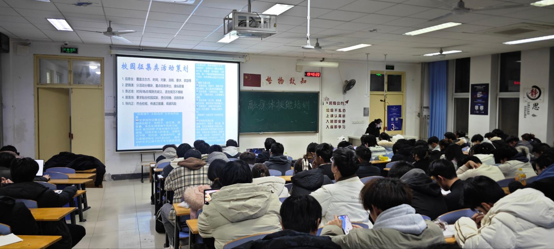 本次培训由经济与管理学院融媒体中心段萍、张晓旭担任主讲,内容围绕宣传工作定位、设计模块精讲、PPT制作与活动策划撰写四大核心板块展开。在宣传工作定位环节,主讲人明确了宣传工作的三大职能:信息枢纽、形象名片和情感联结,强调应通过多平台精准传递核心信息,挖掘校园特色元素塑造学校形象,并围绕师生情感需求凝聚校园共识。设计模块环节以Canva可画为实操工具,从版面设计、基础操作、字体动效到智能抠图进行全流程演示,结合迎新物料、日常宣传海报等实际案例,帮助成员掌握高效设计技巧。PPT制作环节,板块围绕模板选择、逻辑结构与内容编排展开,详细讲解幻灯片尺寸设置、动画添加与格式优化等实操技能,强调PPT应做到简洁大方、逻辑清晰、重点突出。活动策划撰写环节,主讲人从信息完整性、逻辑清晰度、表述准确性与落地可行性等方面,指导同学们如何高效设计既贴合校园实际、又兼具创意与执行性的活动方案,并对人员分工、物资预算、应急方案等关键要素作了系统梳理。